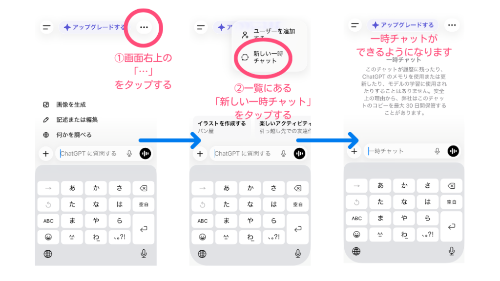 一時チャットとは、「履歴や記憶に残さずに使える一時的な会話モード」です。